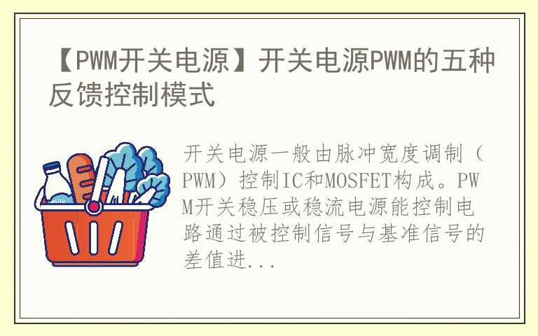 开关电源一般由脉冲宽度调制(PWM)控制IC和MOSFET构成。PWM开关稳压或稳流电源能控制电路通过被控制信号与基准信号的差值进行闭环反馈,调节主电路开关器件的导通脉冲宽度,使得开关电源的输出电压或电流等被控制信号稳定。