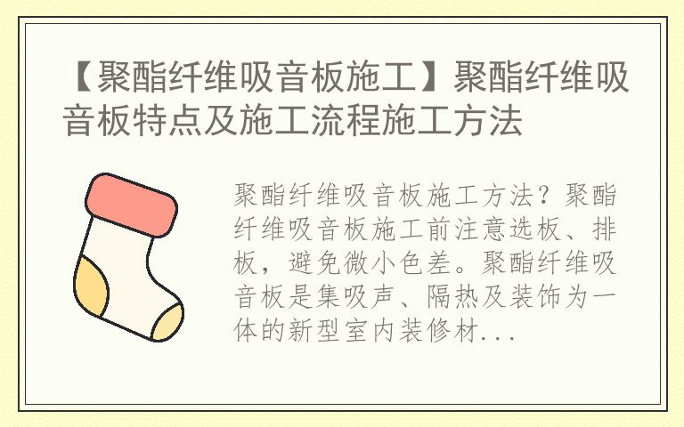 聚酯纤维吸音板施工方法?聚酯纤维吸音板施工前注意选板、排板,避免微小色差。聚酯纤维吸音板是集吸声、隔热及装饰为一体的新型室内装修材料。采用100%聚酯纤维为原料,经过热压融合并以茧棉形状制成。利用热处理方法可加工成具有透气性及各种密度的制品,那聚酯纤维吸音板施工流程是怎么样的呢?下面随小编看看吧。