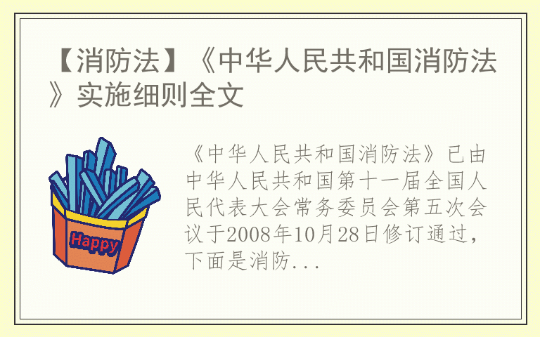 《中华人民共和国消防法》已由中华人民共和国第十一届全国人民代表大会常务委员会第五次会议于2008年10月28日修订通过,下面是消防法实施细则全文。