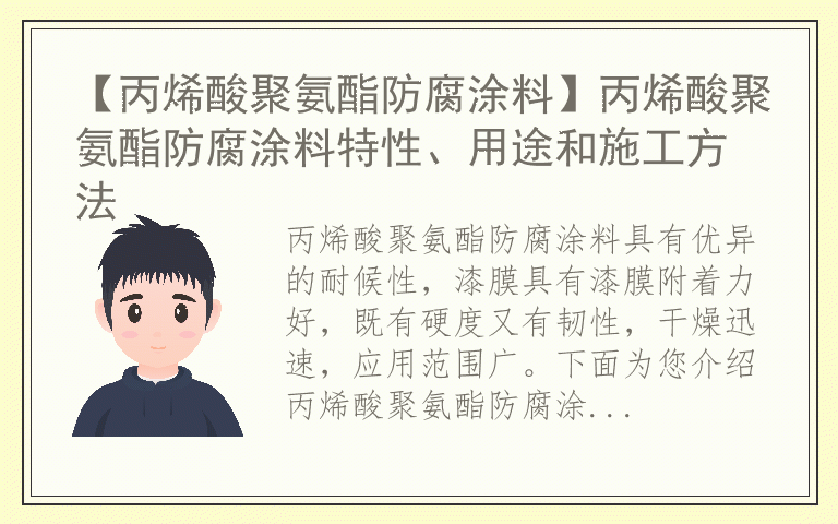 【丙烯酸聚氨酯防腐涂料】丙烯酸聚氨酯防腐涂料特性、用途和施工方法