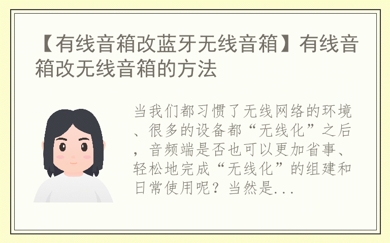 当我们都习惯了无线网络的环境、很多的设备都“无线化”之后,音频端是否也可以更加省事、轻松地完成“无线化”的组建和日常使用呢?当然是可以的,下面,就来看看有线音箱改蓝牙无线音箱的方法。