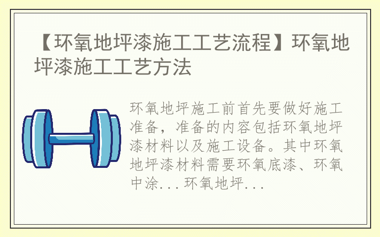 【环氧地坪漆施工工艺流程】环氧地坪漆施工工艺方法