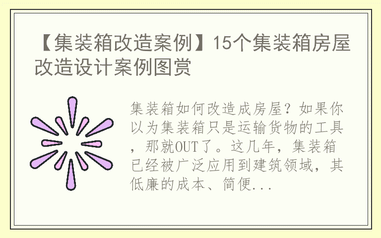 【集装箱改造案例】15个集装箱房屋改造设计案例图赏
