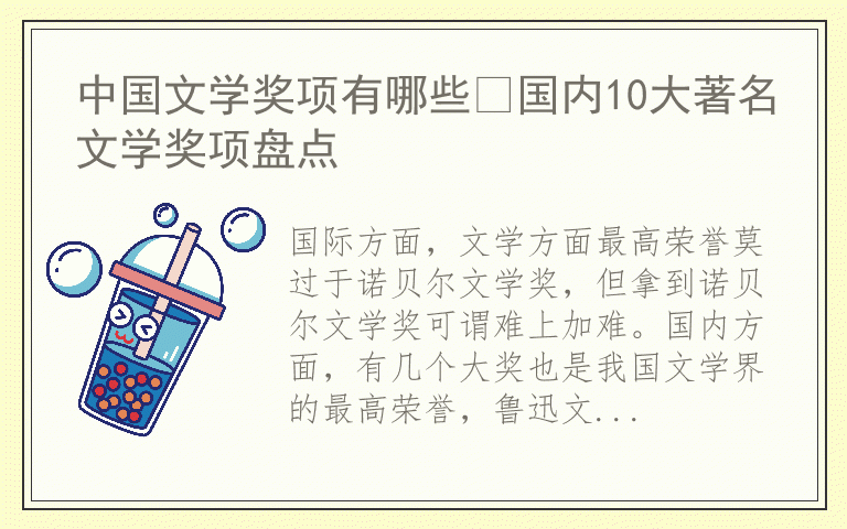 国际方面,文学方面最高荣誉莫过于诺贝尔文学奖,但拿到诺贝尔文学奖可谓难上加难。国内方面,有几个大奖也是我国文学界的最高荣誉,鲁迅文学奖、矛盾文学奖等都广受推崇。接下来就给大家详细介绍一下国内几大著名的文学大奖。